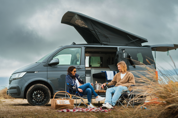 The Waveline Conversion is our layout for vans were there is no need to carry passengers in the rear of the van. It’s a very versatile layout which gives you all the essential camper van amenities such as cooking facilities, storage and a fridge. There are a few Waveline arrangements, but the most popular is when the pull-out beds fill the back of the van when down, making it perfect to sleep two adults. When in a social setting they double as two sofas either side of a table making it perfect for mealtimes.